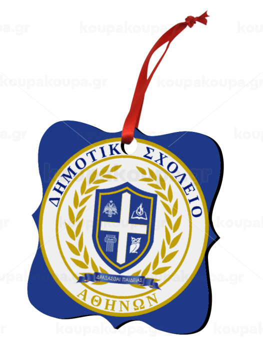 Έμβλημα Σχολικό με δάφνες, Στολίδι Χριστουγεννιάτικο στολίδι polygon ξύλινο 7.5cm