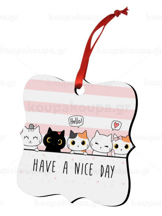 Have a nice day cats, Στολίδι Χριστουγεννιάτικο στολίδι polygon ξύλινο 7.5cm