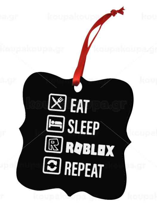 Eat, Sleep, Roblox, Repeat, Στολίδι Χριστουγεννιάτικο στολίδι polygon ξύλινο 7.5cm