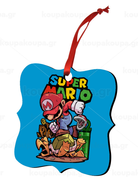 Super mario Jump, Στολίδι Χριστουγεννιάτικο στολίδι polygon ξύλινο 7.5cm