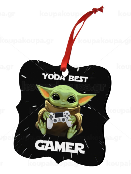 Yoda Best Gamer, Στολίδι Χριστουγεννιάτικο στολίδι polygon ξύλινο 7.5cm