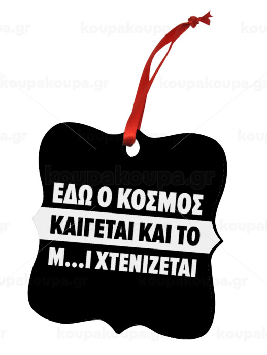Εδώ ο κόσμος καίγεται και το Μ....Ι χτενίζεται, Στολίδι Χριστουγεννιάτικο στολίδι polygon ξύλινο 7.5cm