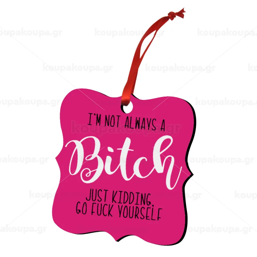 I'm not always a bitch, just kidding go f..k yourself , Στολίδι Χριστουγεννιάτικο στολίδι polygon ξύλινο 7.5cm