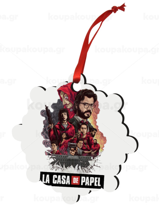 La casa de papel drawing cover, Στολίδι Χριστουγεννιάτικο στολίδι snowflake ξύλινο 7.5cm