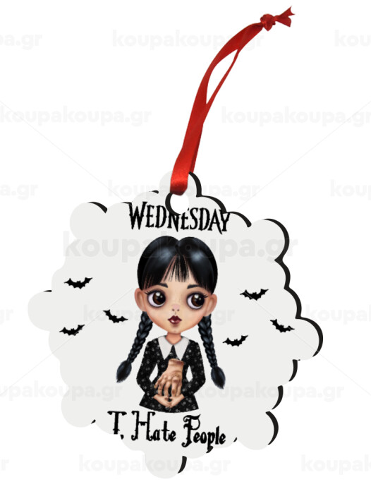 Wednesday Adams, i hate people, Στολίδι Χριστουγεννιάτικο στολίδι snowflake ξύλινο 7.5cm