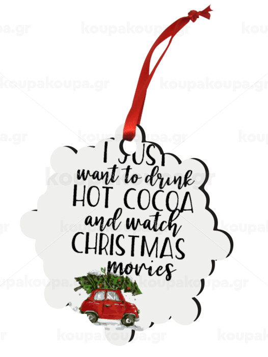 I just want to drink hot cocoa and watch christmas movies mini cooper, Στολίδι Χριστουγεννιάτικο στολίδι snowflake ξύλινο 7.5cm
