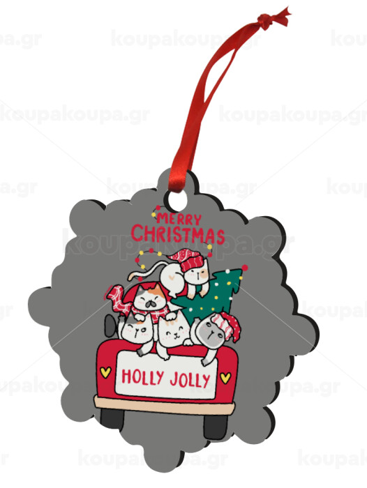 Merry Christmas cats in car, Στολίδι Χριστουγεννιάτικο στολίδι snowflake ξύλινο 7.5cm