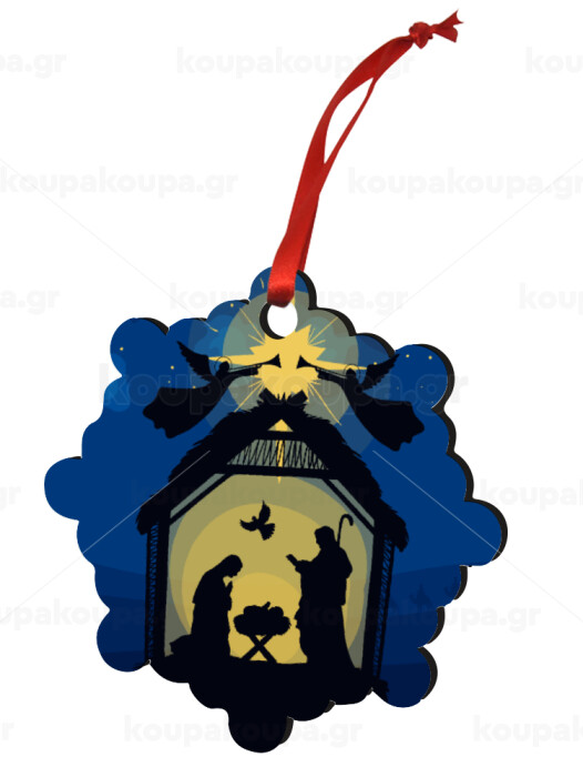 Η γέννηση του Ιησού φάτνη, Στολίδι Χριστουγεννιάτικο στολίδι snowflake ξύλινο 7.5cm