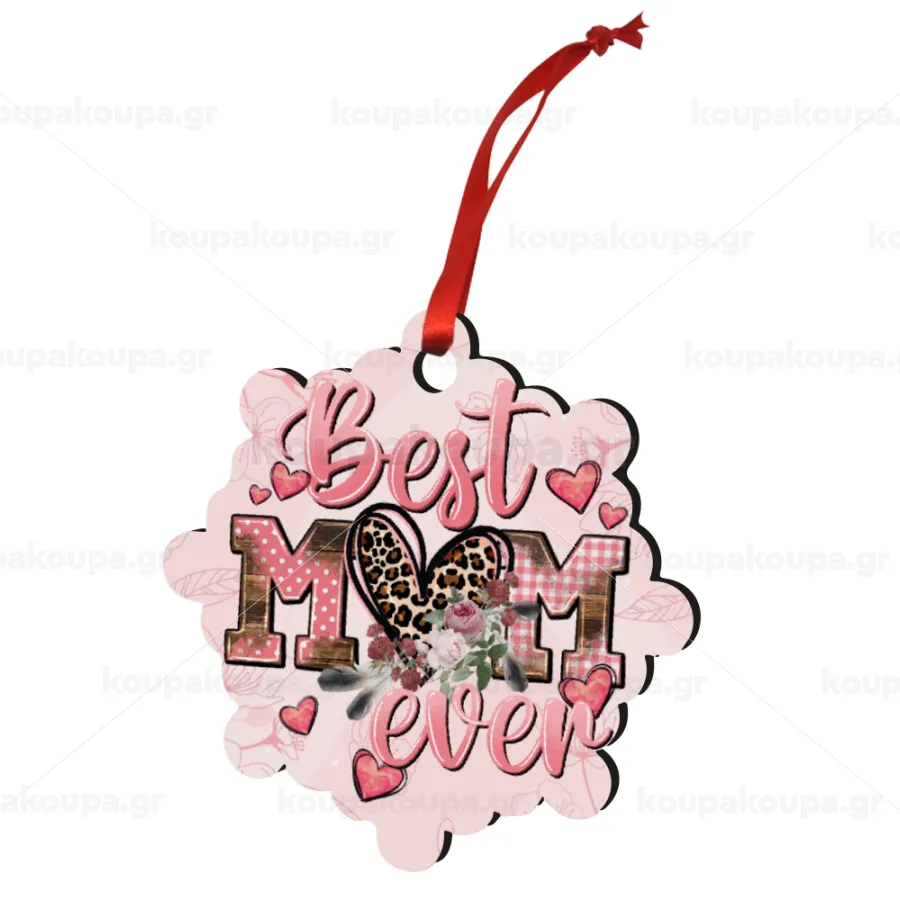 Best mom ever Mother's Day, Στολίδι Χριστουγεννιάτικο στολίδι snowflake ξύλινο 7.5cm