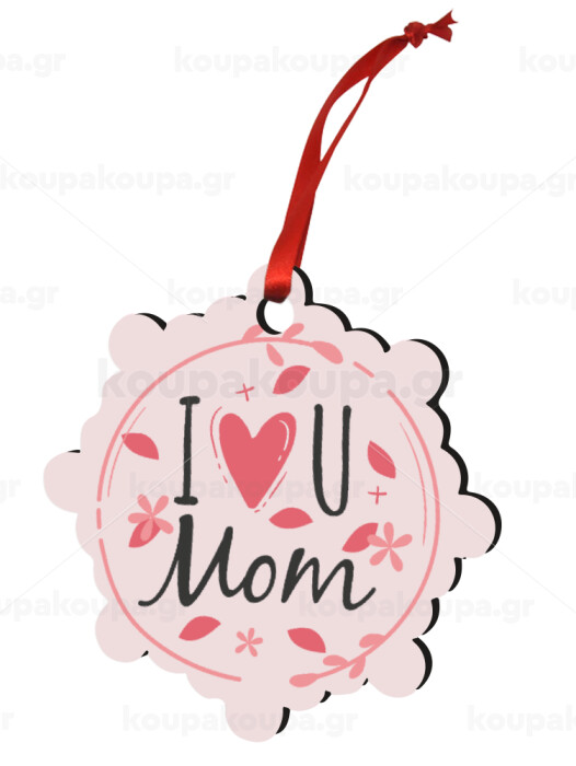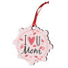 I Love you Mom pink, Στολίδι Χριστουγεννιάτικο στολίδι snowflake ξύλινο 7.5cm