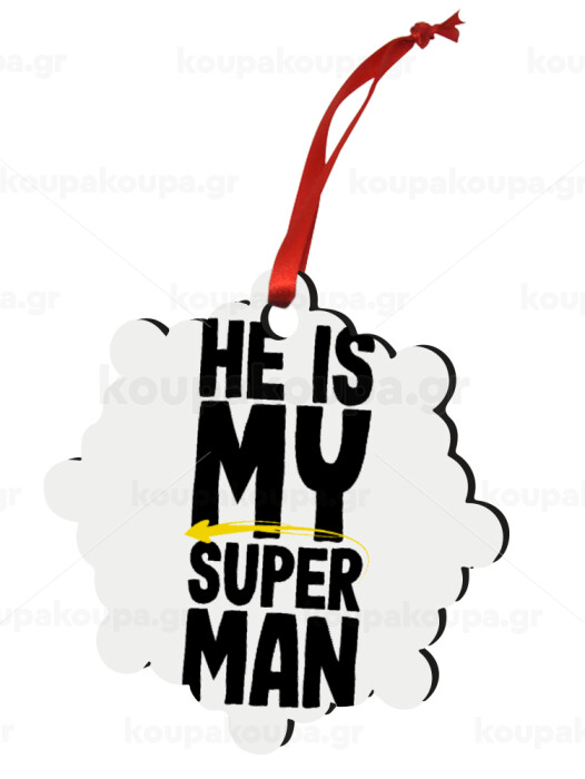 He is my superman, Στολίδι Χριστουγεννιάτικο στολίδι snowflake ξύλινο 7.5cm