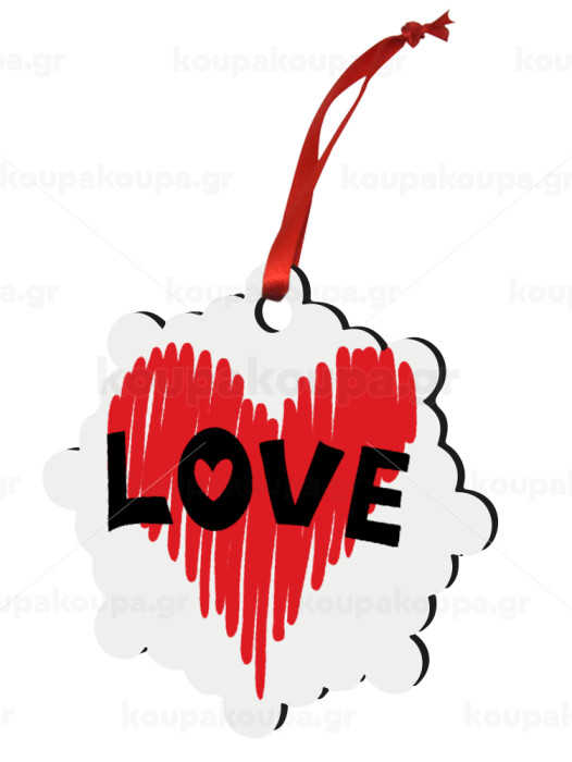 I Love You red heart, Μπρελόκ Ξύλινο τετράγωνο MDF