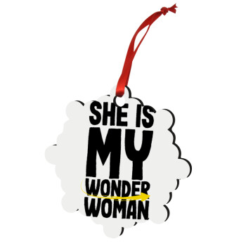 She is my wonder woman, Στολίδι Χριστουγεννιάτικο στολίδι snowflake ξύλινο 7.5cm