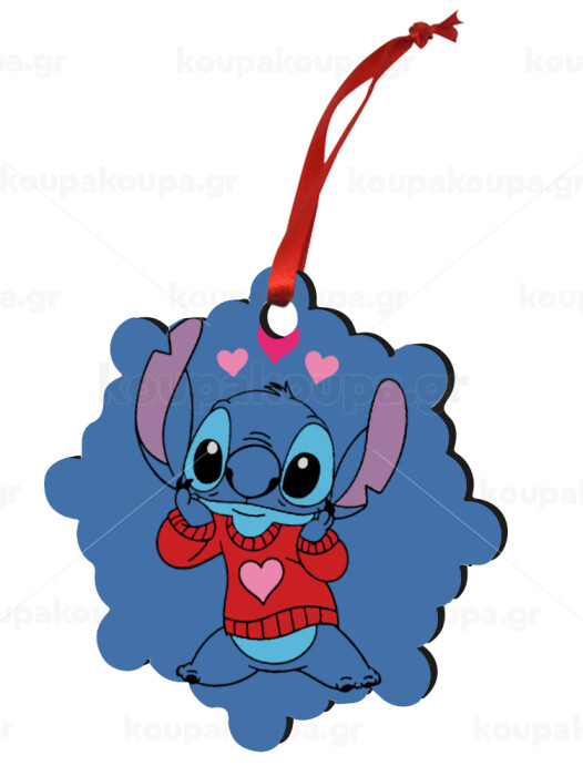 Stitch heart, Στολίδι Χριστουγεννιάτικο στολίδι snowflake ξύλινο 7.5cm