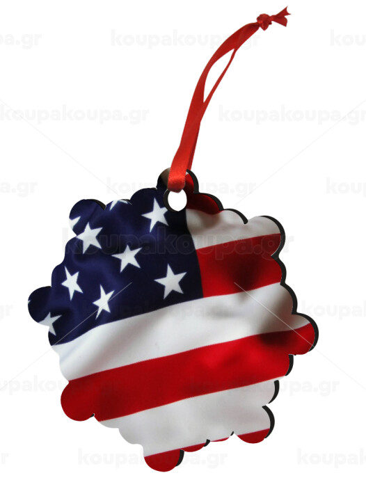 Σημαία Αμερικής, Στολίδι Χριστουγεννιάτικο στολίδι snowflake ξύλινο 7.5cm