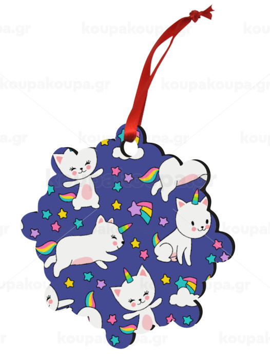 Cats unicorns, Στολίδι Χριστουγεννιάτικο στολίδι snowflake ξύλινο 7.5cm