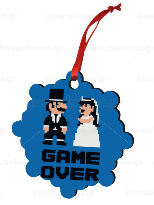 8bit Game Over Couple Wedding, Στολίδι Χριστουγεννιάτικο στολίδι snowflake ξύλινο 7.5cm