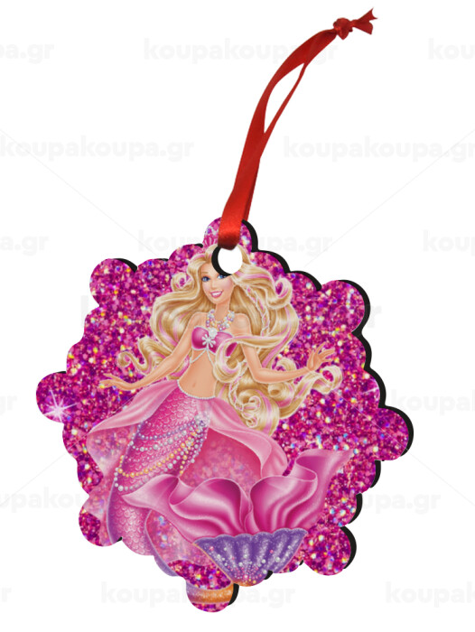 Barbie γοργόνα , Στολίδι Χριστουγεννιάτικο στολίδι snowflake ξύλινο 7.5cm