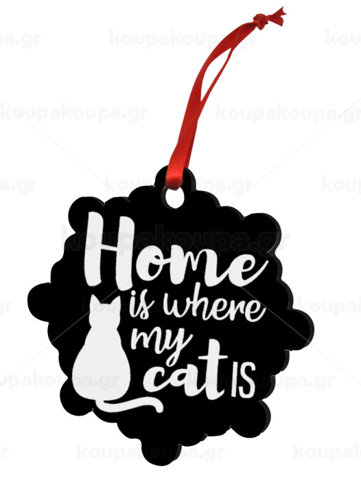 Home is where my cat is!, Στολίδι Χριστουγεννιάτικο στολίδι snowflake ξύλινο 7.5cm