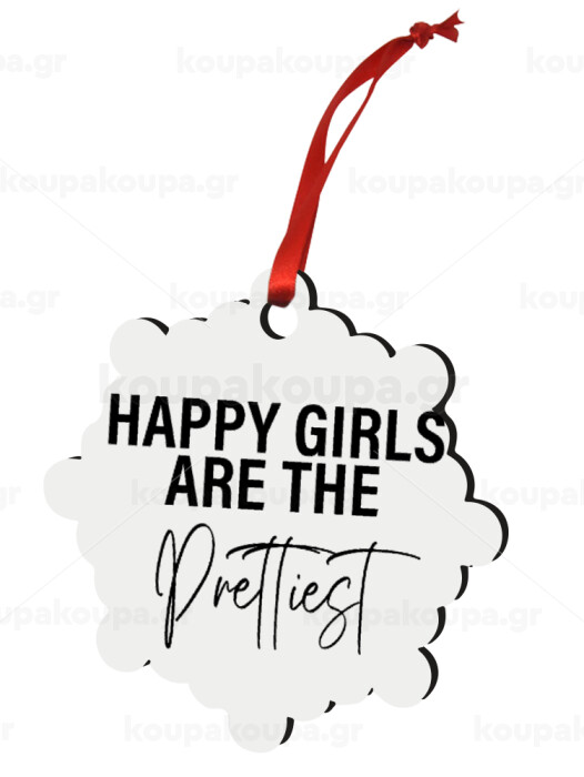 Happy girls are the prettiest, Στολίδι Χριστουγεννιάτικο στολίδι snowflake ξύλινο 7.5cm