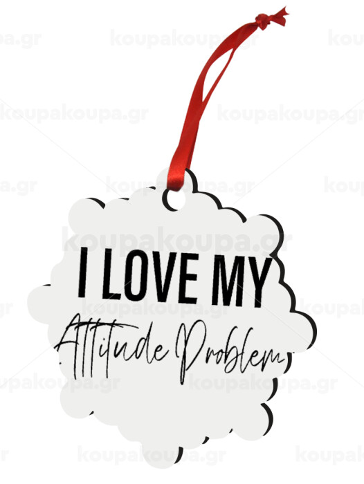 I love my attitude problem, Στολίδι Χριστουγεννιάτικο στολίδι snowflake ξύλινο 7.5cm