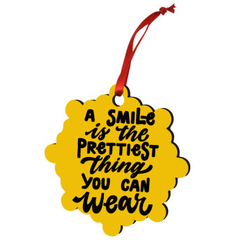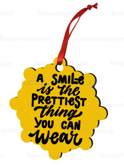 A smile is the prettiest thing you can wear, Στολίδι Χριστουγεννιάτικο στολίδι snowflake ξύλινο 7.5cm