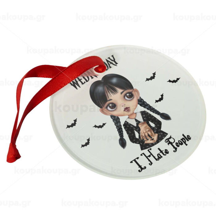 Wednesday Adams, i hate people, Στολίδι Χριστουγεννιάτικο στολίδι γυάλινο 9cm