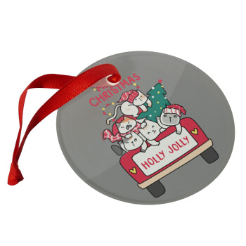 Merry Christmas cats in car, Στολίδι Χριστουγεννιάτικο στολίδι γυάλινο 9cm