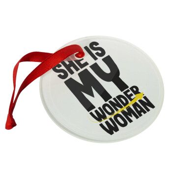 She is my wonder woman, Στολίδι Χριστουγεννιάτικο στολίδι γυάλινο 9cm