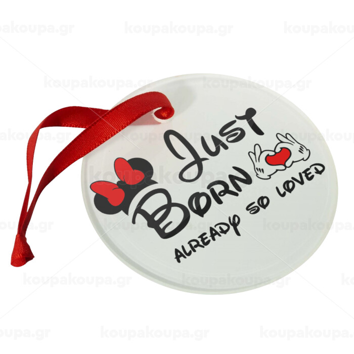 Just born already so loved, Στολίδι Χριστουγεννιάτικο στολίδι γυάλινο 9cm