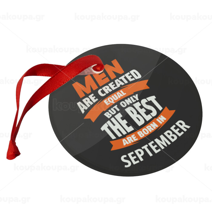 All men are created equal but only the best are born in September, Στολίδι Χριστουγεννιάτικο στολίδι γυάλινο 9cm