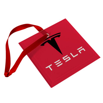 Tesla motors, Στολίδι Χριστουγεννιάτικο στολίδι γυάλινο τετράγωνο 9x9cm