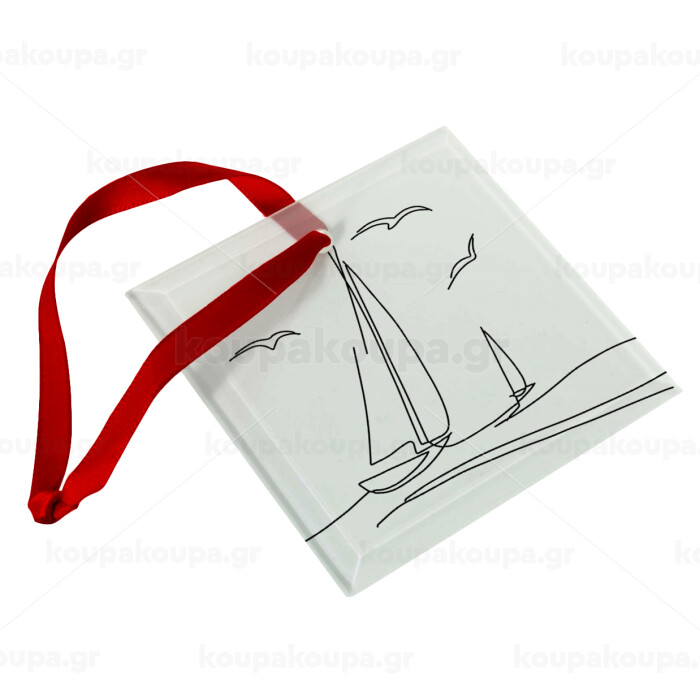 Ιστιοπλοΐα Sailing, Στολίδι Χριστουγεννιάτικο στολίδι γυάλινο τετράγωνο 9x9cm