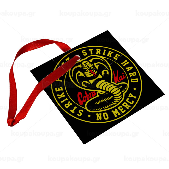 cobra kai strike first dojo, Στολίδι Χριστουγεννιάτικο στολίδι γυάλινο τετράγωνο 9x9cm