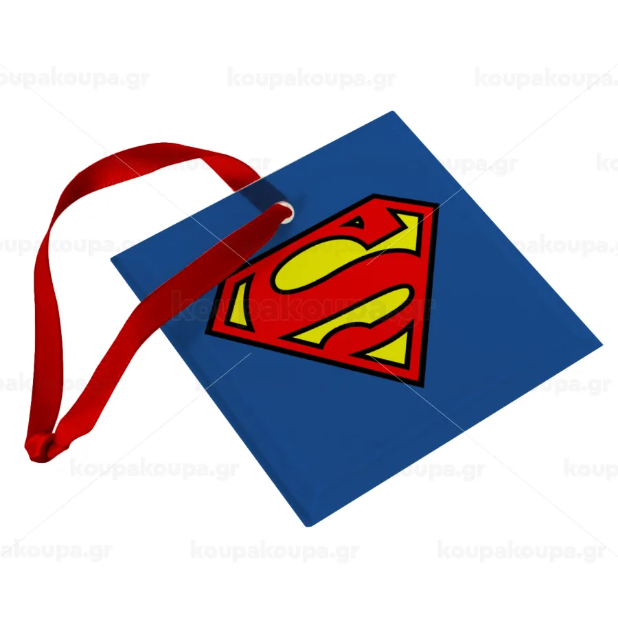 Superman vintage, Στολίδι Χριστουγεννιάτικο στολίδι γυάλινο τετράγωνο 9x9cm