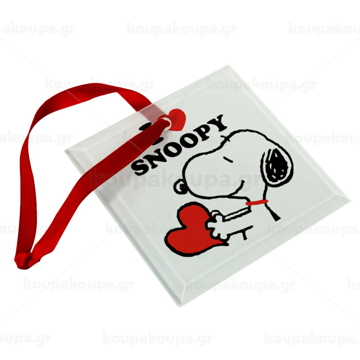 I LOVE SNOOPY, Στολίδι Χριστουγεννιάτικο στολίδι γυάλινο τετράγωνο 9x9cm