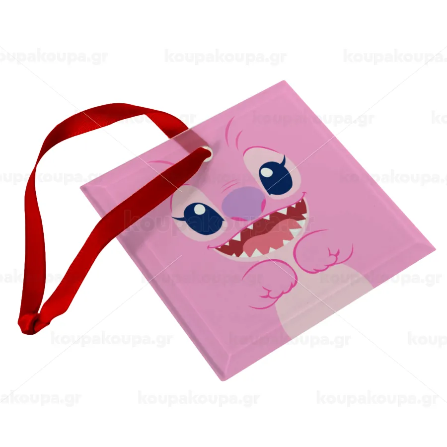 Lilo & Stitch Angel pink, Στολίδι Χριστουγεννιάτικο στολίδι γυάλινο τετράγωνο 9x9cm