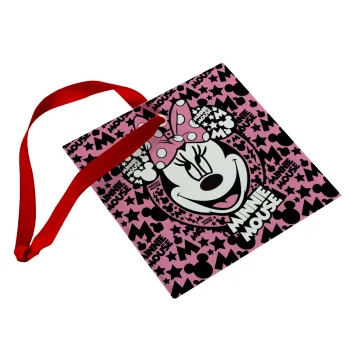Minnie mouse, Στολίδι Χριστουγεννιάτικο στολίδι γυάλινο τετράγωνο 9x9cm