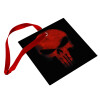 Red skull, Στολίδι Χριστουγεννιάτικο στολίδι γυάλινο τετράγωνο 9x9cm