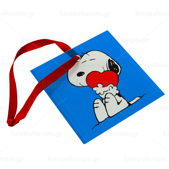 Snoopy, Στολίδι Χριστουγεννιάτικο στολίδι γυάλινο τετράγωνο 9x9cm