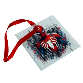 Spider-man, Στολίδι Χριστουγεννιάτικο στολίδι γυάλινο τετράγωνο 9x9cm