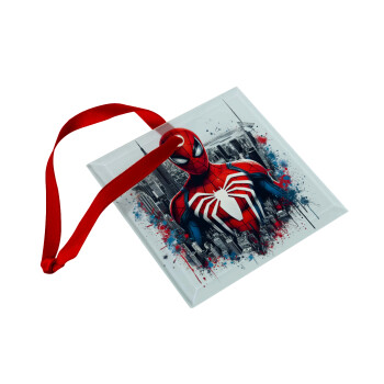 Spiderman upside down, Στολίδι Χριστουγεννιάτικο στολίδι γυάλινο τετράγωνο 9x9cm