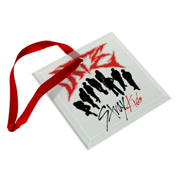 Stray Kids Boy band, Στολίδι Χριστουγεννιάτικο στολίδι γυάλινο τετράγωνο 9x9cm