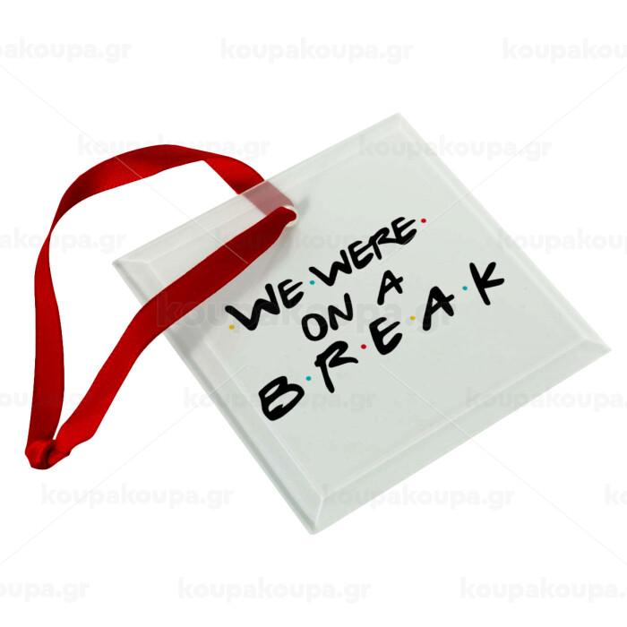 Friends we were on a break, Στολίδι Χριστουγεννιάτικο στολίδι γυάλινο τετράγωνο 9x9cm