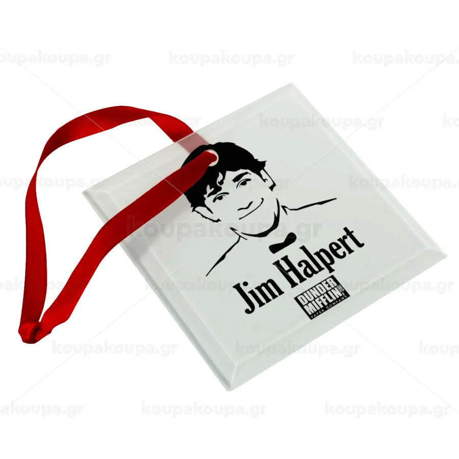 The office Jim Halpert, Στολίδι Χριστουγεννιάτικο στολίδι γυάλινο τετράγωνο 9x9cm