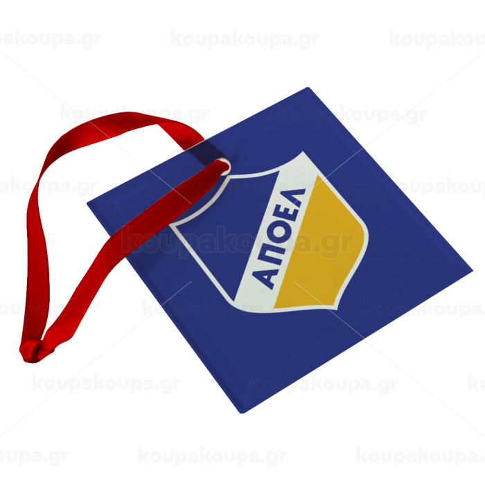 FC ΑΠΟΕΛ Λευκωσίας, Στολίδι Χριστουγεννιάτικο στολίδι γυάλινο τετράγωνο 9x9cm