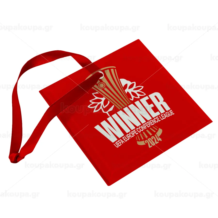 Europa Conference League WINNER, Στολίδι Χριστουγεννιάτικο στολίδι γυάλινο τετράγωνο 9x9cm