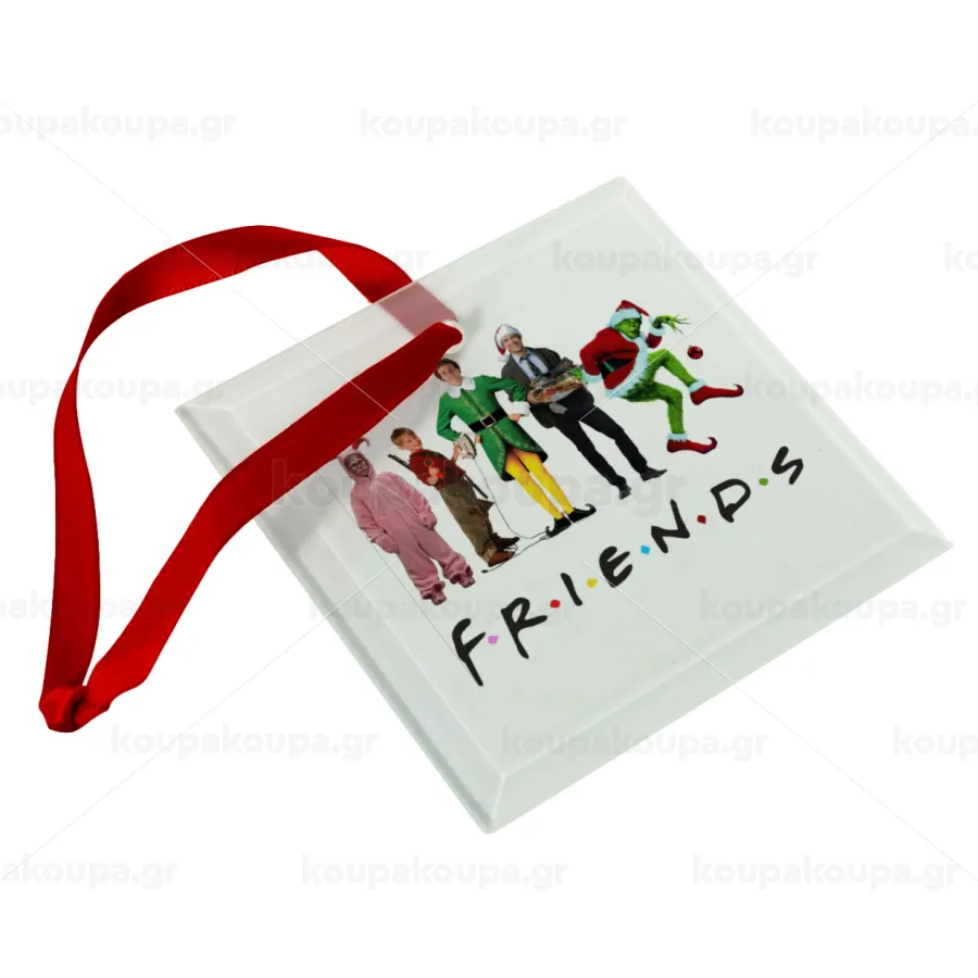 Christmas FRIENDS, Στολίδι Χριστουγεννιάτικο στολίδι γυάλινο τετράγωνο 9x9cm
