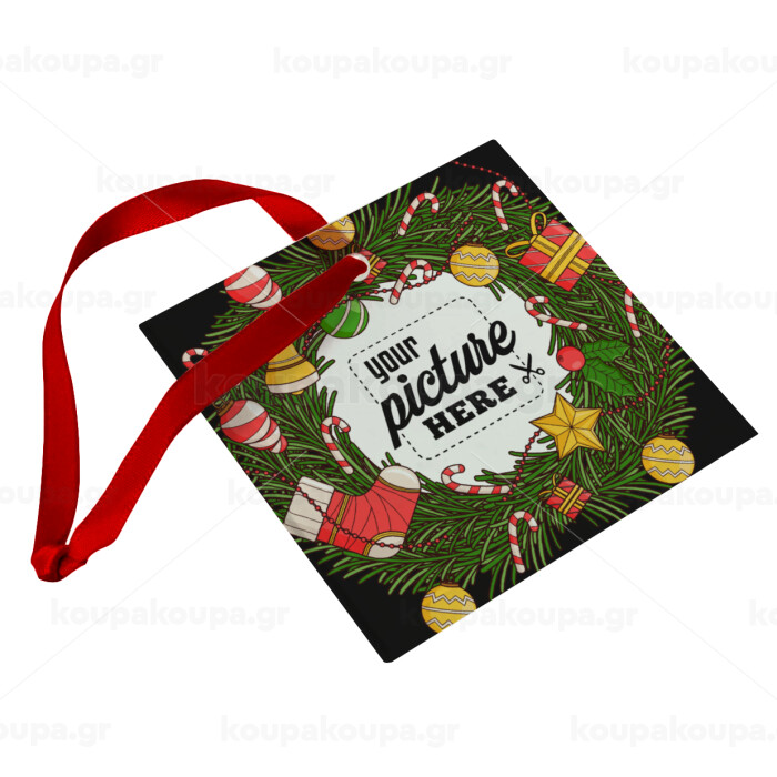 PHOTO Christmas twitch, Στολίδι Χριστουγεννιάτικο στολίδι γυάλινο τετράγωνο 9x9cm