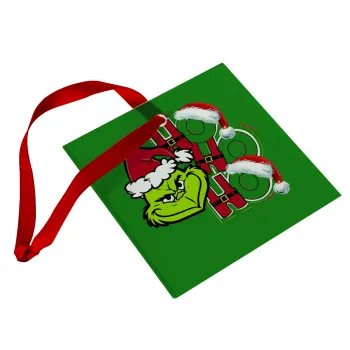 Grinch ho ho ho, Στολίδι Χριστουγεννιάτικο στολίδι γυάλινο τετράγωνο 9x9cm